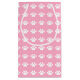 Diese Geschenktasche zeigt ein Muster von weißen Pfoten auf einem rosa Hintergrund. Das ist ein großartiger Gegenstand für gepawbedruckte Babyduschen, für Hunde, für Katzen oder für Tiere.