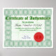 Drucken eines Echtheitszeugnisses Poster