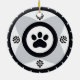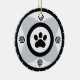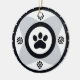 Eine moderne Darstellung eines Pfotendrucks, umgeben von Ziermustern in einem runden Rahmen. Geeignet für Themen wie Haustiere, Natur, Tierpflege und zeitgenössische Grafikelemente.