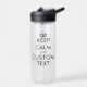 Drucken Sie Ihre eigene lustige Behalt Calm Meme Water Flasche. Modernes typografisches Design mit Krone. Personalisieren Sie mit Ihrem eigenen lustigen behalt Ruhe und führen Sie weiter Angebot plus Farben. Einzigartige Geschenke und Gastgeschenke. Transparenter Kunststoff (BPA frei) Trinkflasche. Ideal für Sport, Wandern, Fitness, Gymnastik, Arbeit und andere große Aktivitäten.