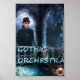 Gotisches Orchesterposter mit blauem Text und einem leichten schwarzen Hintergrund