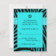Dieser trendige Aqua Blue, Black und White IMITAT Glitzer (PRINTED) Zebradruck gestreift rsvp Karte mit einem DRUCKT türkisblauen Satin Band und einer PRINTIERTEN Diamant- und Juwel-Brosche auf ihm passt zu der Bat Mitzvah Party Einladung unten gezeigt. Es wird hier auf Basispapier gezeigt, aber es würde auf dem Metallpapier in "Eis" besonders schön aussehen, das eine subtile Opaleszenz hat und darauf funkeln kann. Ich empfehle das metallische Silber- oder Goldpapier NICHT, da beide die Designfarben stark verändern werden. Wenn Sie passende Artikel in diesem Design benötigen oder Hilfe bei der Anpassung benötigen, schicken Sie bitte eine E-Mail an niteowlstudio@gmail.com. ****BITTE BEACHTEN SIE, dass alles so gedruckt wird, wie es auf Ihrem Monitor angezeigt wird. Ich werde Ihre Einladung nicht sehen, wenn Sie sie bestellen und Zazzle wird nichts bearbeiten.