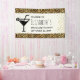 Ein Junggeselinnen-Abschied Begrüßungsbanner mit stilvollem Design. Exotische schwarze Leoparden auf einem goldenen Hintergrund. Wilder und dennoch eleganter Stil. Ein Martini-Glas aus schwarzer Silhouette fügt dem Design einen Party-Flair hinzu. Gold Konfetti Bild entlang der Seite.