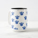 Druckmuster für Tierpaw. Blau und Weiß. Zweifarbige Tasse