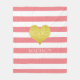 Fleecedecke mit niedlichem goldfarbenem Herzdruck auf rosa-weiß gestreiften Mustern mit personalisiertem Namensdruck.
