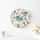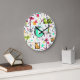 Drum Kit: Das Retro der Wasserfarben-Memphis. Große Wanduhr
