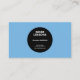 A business card for a drum teacher or a drummer. It comes with a silhouette of a drummer playing drums and a white sun behind, all on a blue background. On the back, there is contact information in a black circle.