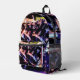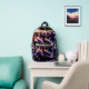 Das Kunstwerk von ZoeSPEAK auf diesem Rucksack ist ein Originalfoto eines Drum-Set. Die glänzenden schwarzen Trommeln mit ihren silbernen Felgen spiegeln die Lichter im Studio, Blues, Rot und Grüntöne wider. Cymbals über den Trommeln warten, um getroffen zu werden.