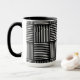 Weiße Drumsticks, die in einem Crosshatch-Muster vor schwarzem Hintergrund angeordnet sind, sind ein einzigartiges Design für Drummer, Musiklehrer und Schüler in Konzerten, Jazz und Marching Bands.