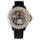 Schwarze Damen Email Strassuhr