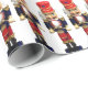 Dieses farbenprächtige Verpackungspapier ist mit einem traditionellen hölzernen Nutcracker Drummer auf weißem Hintergrund ausgestattet, der sich perfekt für die Verpackung Ihrer Weihnachtsgeschenke eignet.