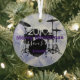 Weihnachtsschmuck für einen Schlagzeuger. Eine wunderschöne, lila, aber sanfte Kulisse gibt dem Gefühl die Möglichkeit, eine Live-Show zu sehen. Drum Grafik sieht wirklich schön aus mit Frohe Weihnachten, das Jahr und den Namen des Geschenkempfängers. Entworfen von HAMbyWhiteGlove.