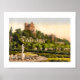 Vintager Lithographie des Schlosses Drummond aus dem Jahre 1895 mit Bildern einer großen, roten Sandsteinburg mit formalen Gärten und einer Statue im Vordergrund. Digital gereinigt, verbessert und künstlerisch gerendert, um Stift und Tinte mit Aquarellen zu ähneln. Das Schloss Drummond befindet sich in Perthshire, Schottland und wurde um 1490 von John Drummond, dem 1. Lord Drummond von Cargill, erbaut.
