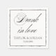 Add a playful yet sophisticated touch to your wedding bar or cocktail hour with these "Drunk in Love" custom napkins. This design features a striking, large-scale elegant script for the phrase "Drunk in love," making it a perfect conversation starter for your guests as they enjoy their drinks.