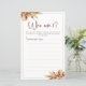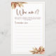Genießen Sie den rustikalen Charme des Herbstes mit unserer Dry Pampas Grass Who Bin I Game Card, die sich perfekt für boho Brautpartys und thematische Ansammlungen eignet. Die mit goldenen Akzenten geschmückte skurrile Karte erfasst das Wesen der böhmischen Eleganz und fügt jedem Event eine Touch von natürlicher Schönheit hinzu. Lass den sanften, gedämpften Farbtönen des Pampas-Gras-Set den Ton für ein köstliches Ratespiel, das die Gäste verzaubern und wertvolle Erinnerungen schaffen wird.