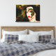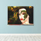 Eine wunderschöne Fantasiefrau: eine magische Drohne, Wächter des Waldes und der Bäume. Sie hat fließende, braune Haare aus Blätter, Blätter an Gesicht und Hals und grünen Augen. Im Hintergrund sind Waldbäume.