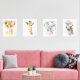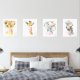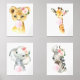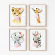Fügen Sie mit diesen wunderschönen Kunstdrucken die Touchs in das Kinderzimmer oder Kinderzimmer Ihres Babys ein! Das Design umfasst Dschungeltiere (Löwe, Giraffe, Elefant, Zebra), rosa Kaugummi, rosa Aquarellfarben und Blume.