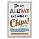 Ein lustiger, lichtdurchfluteter und farbenfroher Weg, Wertschätzung zu zeigen! Dieses spielerische Poster "You Are All That and a Bag of Chips!" ist perfekt, um Dankbarkeit mit einer Drehung Spaß auszudrücken. Mit lebendiger Typografie und einem fröhlichen Design ist es ein ausgezeichnetes Geschenk für Lehrer, Mitarbeiter oder Freunde. Es ist sicher, ein Lächeln zu bringen und aufheitern jeden Raum mit einer süßen Danksagung Nachricht.