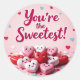 Begrüßen Sie Ihren Valentinstag mit diesem hübschen Aufkleber "You are the Sweetest!"! Mit einem Haufen bezaubernder Bonbonherzen mit lächelnden Gesichtern, umgeben von pastellfarbenen Konfetti und Herzen auf einem weichen rosa Hintergrund, ist dieser Aufkleber der perfekte Weg, Liebe und Freude zu verbreiten. Dieses Design wurde durch die zeitlose Tradition inspiriert, am Valentinstag Süßtherzen zu teilen, wobei jeder eine kleine Botschaft der Zuneigung trug. Wir wollte, dieses süße, fröhliche Ambiente zu erfassen und es in einen spielerischen Aufkleber zu verwandeln, der jedem Lächeln lässt. Egal, ob Sie Karten dekorieren, einem Geschenk etwas Liebe hinzufügen oder einfach jemandem den Tag aufhellen, dieser Aufkleber wird Ihnen sicher eine süße Touch Freude bringen! 🍬 💖