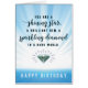Wünschen Sie jemandem einen guten Geburtstag mit diesem brandneuen Design mit der Botschaft: "Du bist ein glänzender Stern, ein geniales Juwel, ein funkelnder Diamant in einer dunklen Welt. GLÜCKLICH GEBURTSTAG." Das Design wird mit Diamantenabbildungen und Lichtstrahlen auf gradientenblauem Hintergrund betont. Inside hat diese Botschaft, kann aber angepasst werden: Sie sind würdig, einzigartig, wirklich phantastisch. Hoffe, dass dein Geburtstag voller blendendes Licht ist, ein echtes Spiegelbild deiner strahlenden Schönheit, innen und außen.