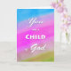 Du bist ein Kind Gottes, Christliches Thema "Gebetet für dich", Papier Grußkarte für die Obdachlosen und die Bedürftigen. Kann von einem Christlichen obdachlosen Ministerium verwendet werden. Cover Bild ist ein Foto von dünnen Farbabwaschen in leuchtenden Farben von blau, magenta und grün. Bibel Vers von 1 John 3:2 (WEB-Übersetzung) und ein Gebet in der Karte. Art, Bild und Vers Copyright © Shoaff Ballanger Studios.