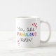 Beginnen Sie Ihren Tag Gefühl fantastisch mit dieser Tasse! Diese Tasse ist nicht nur für Kaffee (oder Tee, oder heißes Kakao!), sie ist eine tägliche Dosis an Fantasie. Das helle Design und die "You Are Fabulous Darlin'' Nachricht werden Ihnen ein Lächeln ins Gesicht bringen und Sie mit jedem Schluck an Ihre Großartigkeit erinnern. Egal ob Sie Ihre Morgenroutine erobern oder eine gemütliche Nachmittagspause genießen, diese Tasse ist die perfekte Begleiter für Ihren Aufstieg.