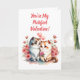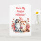 Diese bezaubernde "You're My Purfect Valentine!"-Karte kann nach außen und innen personalisiert werden, wo man seine eigene Nachricht eingeben kann. Wenn Sie eine längere Nachricht eingeben, drücken Sie die Eingabetaste, um eine Zeilenumbruch zu machen. Die Karte hat zwei niedliche Kätzchen, die gegeneinander schnipsen, umgeben von Blume. Sie haben zwei Herzen über den Köpfen.