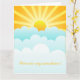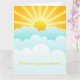 Diese Karte zeigt ein Design von blauen Wolken vor einer gelben Sonne mit gelben Strahlen. Der Text "You are my sunshine" kann auf Wunsch angepasst werden.