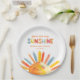 Niedliche Teller mit Sonnenschirm-Babydusche, die eine spielerische und farbenfrohe Sonne und eine Textvorlage zum Anpassen bieten.