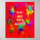 Die Worte "You Are Not Alone" über eine abstrakte Sicherheit Button Herzdesign auf hellrot wurde geschaffen, um Unterstützung für alle Arten von Diversity, sei es Einwanderung, Religion, Geschlecht, oder andere Sichtweisen zum Ausdruck zu bringen. Der Text ist nach Wunsch anpassbar. Das Kunstwerk zu diesem Produkt wurde vom Designer des Stores erstellt und ist urheberrechtlich geschützt.