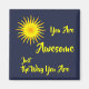 Richten Sie sich mit dieser positiven Botschaft der Validierung und Wertschätzung auf einem Kühlschrank-Magneten! Eine tolle Geschenkidee für Freunde und Familie oder als positive Bestätigung für sich selbst. Dieses Design enthält eine hellgelbe Orangensonne und den Text "You are Phantastisch just the way you are".
