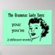 Grammar Lady sagt: Ihr und ihr sind zwei verschiedene Worte! Grammar Lady will dir, dich daran zu erinnern, dass du eine besitzgierige Zugehörigkeit zu dir bist und du eine Kontraktion von dir bist. Einfaches Single-Farbdesign mit Text und Gesicht.