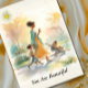 Aquarell Du bist schön - Muttertagskarte Aquarell Elegante afroamerikanische Mutter - Muttertagskarte Feiern Sie die Schönheit und Stärke der Mutterschaft mit dieser sanften Aquarell-Muttertagskarte. Diese Illustration zeigt eine stilvolle Mutter, die selbstbewusst mit ihren Kindern durch einen sonnendurchfluteten Gartenweg geht, und fängt die Anmut, Wärme und alltägliche Magie ein, Mutter zu sein. Sanfte Farben und fließende Pinselstriche schaffen eine friedliche, aufmunternde Szene, die die Liebe, Energie und Fürsorge ehrt, die Mütter jeden Tag ihren Familien entgegenbringen. Diese Karte ist perfekt, um einer Mutter, die ihr Leben mit Schönheit, Geduld und Stärke meistert, herzliche Wertschätzung auszudrücken.