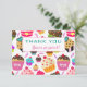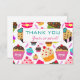 Ein buntes Kuchen Muster danke Ihnen Karte. Hell und fröhlich dieses Design ist perfekt zu sagen "Danke. Du bist so süß!" Eine lustige Karte, um den Cupcake-Liebhabern Ihre Wertschätzung zu zeigen. Der Rücken wird leer verlassen, damit Sie Ihre eigene Nachricht schreiben oder einen Gutschein beifügen können.