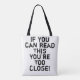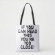 Ein lustiges Zitat in einem Not leidenden Schriftart. Der Satz lautet: Wenn du das lesen kannst, bist du zu nah.