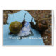 zwei gewöhnliche braune Schnecken in der Nähe einer gebrauchten Briefmarke