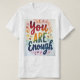 Mit unserem "You Are Enough"-T - Shirt können Sie sich selbst-Liebe und Positivität vereinen. Dieser T - Shirt mit einer kühnen, bestärkenden Botschaft, die in einem stilvollen und auffälligen Schriftart entworfen wurde, ist eine tägliche Erinnerung, die Sie vollendet, würdig und mehr als genug, genau so wie Sie sind. Aus weichem, atmungsaktivem Stoff gefertigt, bietet es Komfort und Langlebigkeit, perfekt für lässige Abnutzung oder als nachdenkliches Geschenk für jemanden, der einen Vertrauensschub braucht. Tragen Sie es stolz und lass der Welt, dass Selbstakzeptanz die ultimative Form der Stärke ist