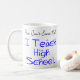 Zeige deine Lehrhaltung ab, wenn du dieses Jahr wieder zur Schule gehst. Dieses Design der Tasse ist alles, was in grün, blau und schwarz geschrieben wurde und die Phrase enthält: "Du kannst mich nicht erschrecken! Ich unterrichte die High School." Ein wunderbares Geschenk, um sich bei einem Lehrer zu bedanken, während der Lehrerwertungswoche und am Ende des Jahres oder zu jeder Zeit dazwischen.