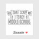 Mit unserem Aufkleber 'You Can't Scare Me, I trainiere Middle School' kannst du deine Widerstandsfähigkeit festhalten! Ideal für Mittelschullehrer und perfekt als Geschenke oder für Mittellehrer. Zeigen Sie Stolz, die einzigartigen Herausforderungen und Belohnungen des Unterrichts von Mittelschülern zu bewältigen!