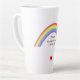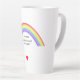 Diese große latte Tasse ist mit einem Regenbogen und den Worten dekoriert: Man macht die Welt zu einem besseren Ort. Unten ist ein kleines, rotes Herz. Man kann es mit jedem beliebigen Namen personalisieren, und es ist einfach, die Wörter zu ändern, wenn man will. Gib es als Freundschaft oder Valentinin Gegenwart.