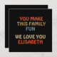 Du machst diesen Familienspass. Wir Liebe dich, Vater. Vatertag Botschaft der Wertschätzung. Ideal für Ehemann, Vater, Papa, Männer, Väter, Familie, von allen Familientöchtern und Söhnen. Farbenfrohe Worte in Orange, Grün/Blau und Beige verfeinert. Der Rücken ist bereit, die Familiennamen hinzuzufügen.
