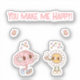 Ein fröhlicher Ausschnitt-Aufkleber mit einem glücklichen Gehhirn mit chemischen DNA Smilies und dem Text You Make Me Happy! (Text kann angepasst werden).