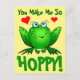 Niedlicher, fröhlicher, grüner Cartoon Frosch mit googly blauen Augen, leuchtend rote Liebe Herzen und eine Mohnbotschaft für jemanden, der etwas Besonderes ist! Geben Sie an Freunde, Familie, Liebste oder jeden, der Sie hoppy macht (Sie selbst inbegriffen!). Sie können den Text auch durch Ihre eigenen Worte des Witzes und der Weisheit ersetzen, wenn Sie gewollt haben. Die Hintergrundfarbe ist eine fröhliche hellgelbe Farbe, aber Sie können sie mit der Option "Anpassen" ändern. Dieser Frosch ist ein origineller Kunstamphibien, der vom Künstler M S Chaume entworfen wurde, zunächst als Teil eines Online-Spiels. In der Spiritualität der Natur sind Frösche Symbole für Glück, Gesellschaft, Gesang und Gesang, Romantik, Mondmagie, Gesundheit und Power der Transformation. Sei hoppy!