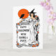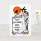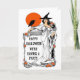 Brillante Orangentöne, ein Symbol für Feuer, spirituelle Energie und Ermächtigung umgeben unsere Hexe, die Gäste zu ihrer Feier zu begeistern! Frohe Halloween!