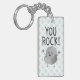 Ein niedlicher Schlüsselanhänger mit einem spielerischen Schriftart und einer Kawaii-Illustration eines Felsens und den lustigen Worten: 'You rock!' Ein tolles Geschenk für einen geliebten oder einen guten Freund (der ein Rocker- oder Metalmusikliebhaber ist), der ein großes Dankeschön verdient. Lass ihnen wissen, wie sehr Sie sie schätzen! Karo in unserem Shop für passende Produkte!