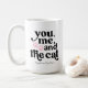 Ein niedliches Paar Geschenk für Katzenmütter und Väter. Die Farbe der Wörter "Sie, ich und die Katze" sowie die Farbe der Pfoten können Sie in die Farbe Ihrer Wahl ändern, indem Sie bei der Personalisierung in die Option Bearbeiten durch Design-Tool gehen. Die Farben können auf jeder Seite der Tasse unterschiedlich sein. Man kann es zu einem Geschenk für ein Paar machen und für jede Person ein anderes Farbschema verwenden.