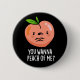 Du willst mich peach Funny Fruit Pun Dark BG Button