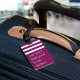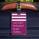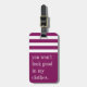 Hände weg von der Tasche! Mit diesem lustigen Anhänger in einem lebhaften violetten Farbton entdecken Sie potenzielle Gepäckdiebstähle, die Ihre Tasche leicht zu erkennen lila machen. "Du wirst in meinen Kleider nicht gut aussehen" erscheint in weißer Schrift unter einem weißen gestreiften oberen Rand. Personalisieren Sie Ihre Kontaktdaten auf der Rückseite.