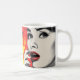 Two women are depicted in a vibrant, pop art style, one in shades of blue and yellow and the other in grayscale with bold red lipstick. The background features a mix of abstract patterns in red and yellow tones.