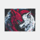 Zwei hyperrealistische Wölfe, ein Crimson, ein Elfenbein, das das uralte Yin-Yang spiegelt und das ursprüngliche Gleichgewicht, die Einheit im Kontrast und die wilde Harmonie innerhalb einer kosmischen Wildnis symbolisiert.